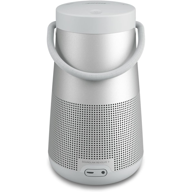 El altavoz portátil Bose SoundLink Revolve+ II Bluetooth cuenta con una conexión Bluetooth que permite vincular dispositivos compatibles. Su duración de batería alcanza hasta 17 horas con una sola carga. Tiene un diseño cilíndrico que ofrece sonido de 360 grados. El altavoz incluye un controlador de bajo y dos radiadores pasivos para una adecuada reproducción de graves. Dispone de un puerto USB-C para carga y una entrada de audio auxiliar. Es resistente al agua con una clasificación IP55, lo que le permite ser utilizado en exteriores. Incluye un asa para facilitar su transporte. Compatible con asistentes de voz y puede conectarse a varios altavoces Bose para sonido estéreo.